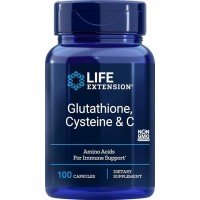 The supplement Life Extension Glutathione, Cysteine and C combines three antioxidants to support liver function, detoxification, and overall immune health. It is formulated as a gluten-free and non-GM..